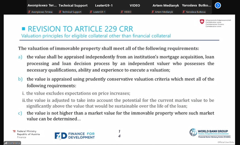 Участь у Міжнародному воркшопі Світового банку / FinSAC на тему: «EU Law Impacting Valuation for Mortgage Lending»