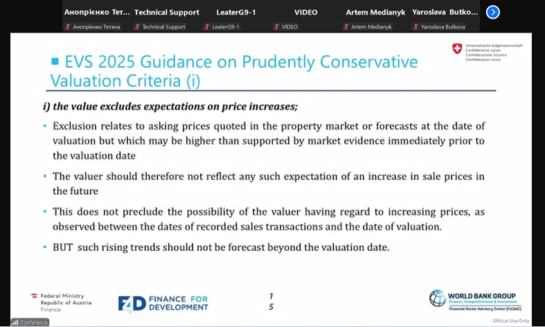 17 жовтня 2025 року у гібридному форматі відбувся міжнародний воркшоп Світового банку / FinSAC на тему: «EU Law Impacting Valuation for Mortgage Lending» («Вплив законодавства ЄС на оцінку вартості іпотечних кредитів»).