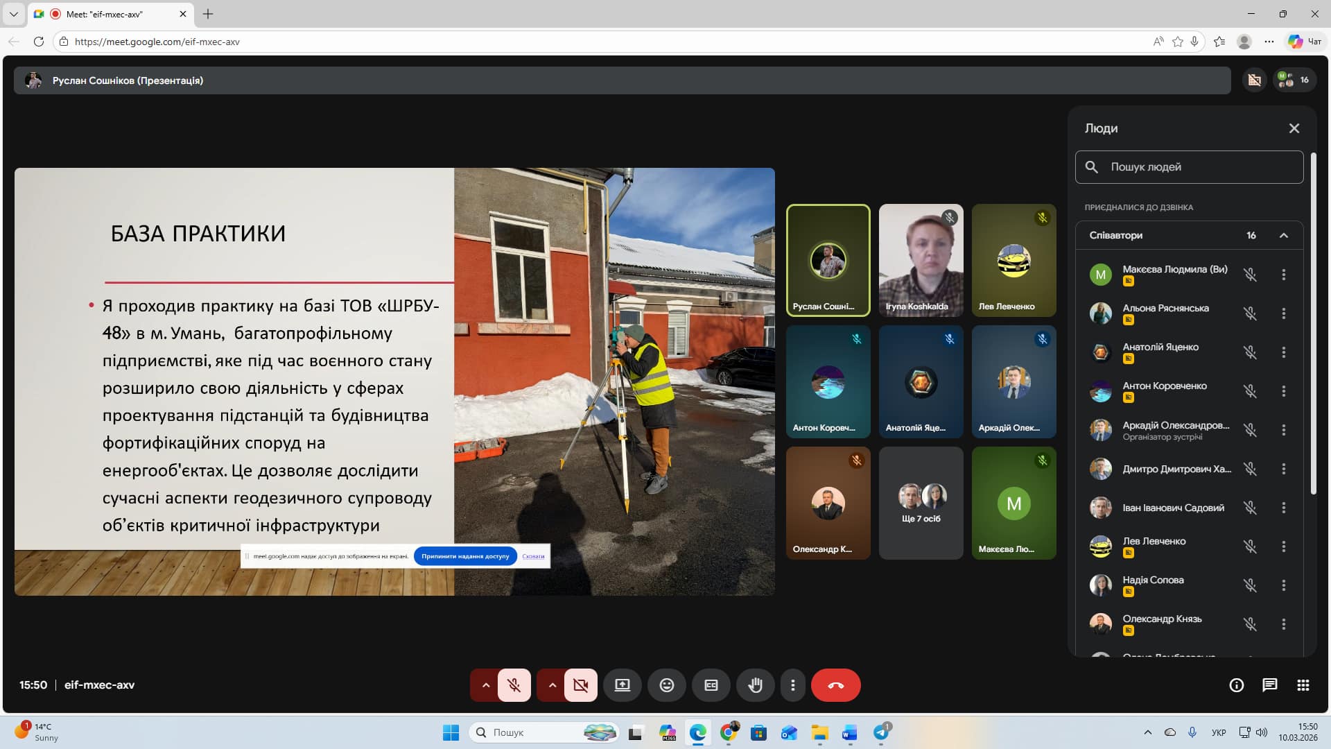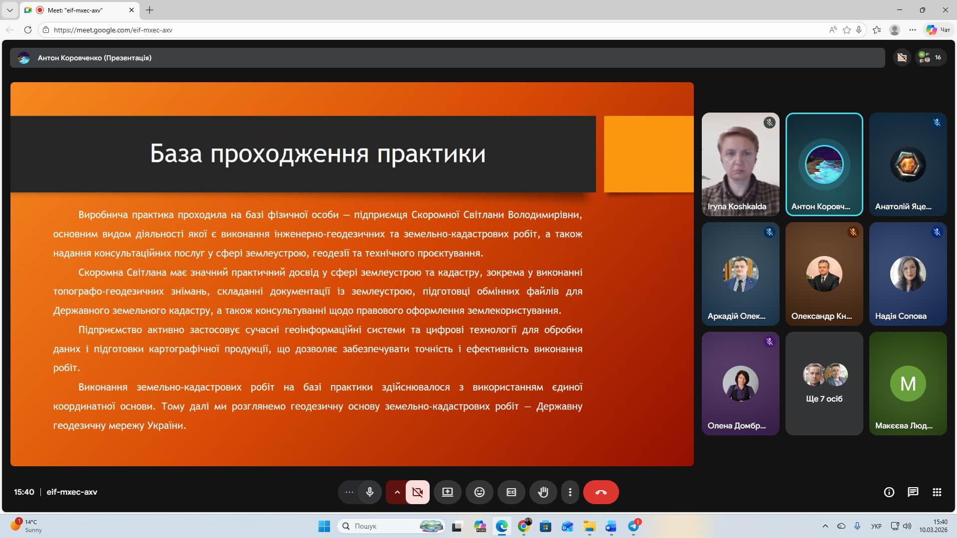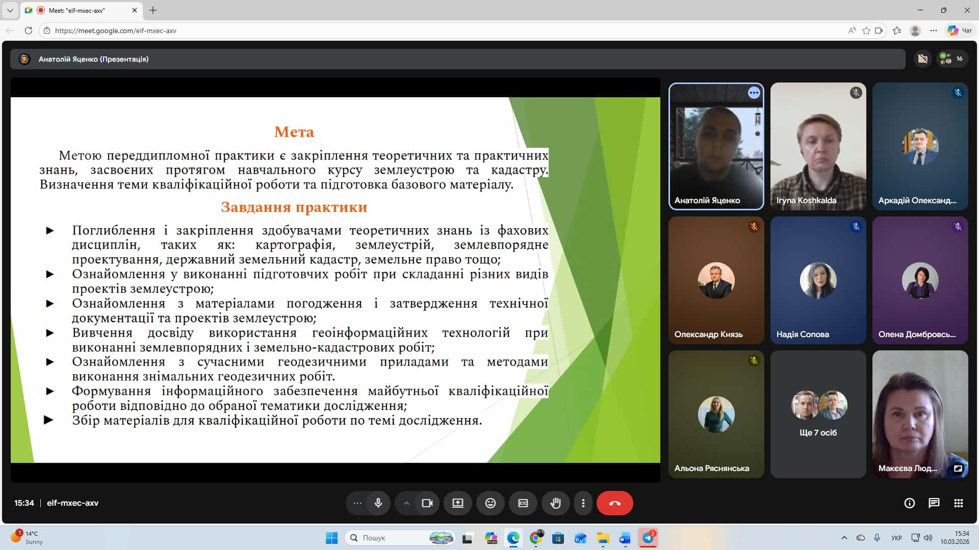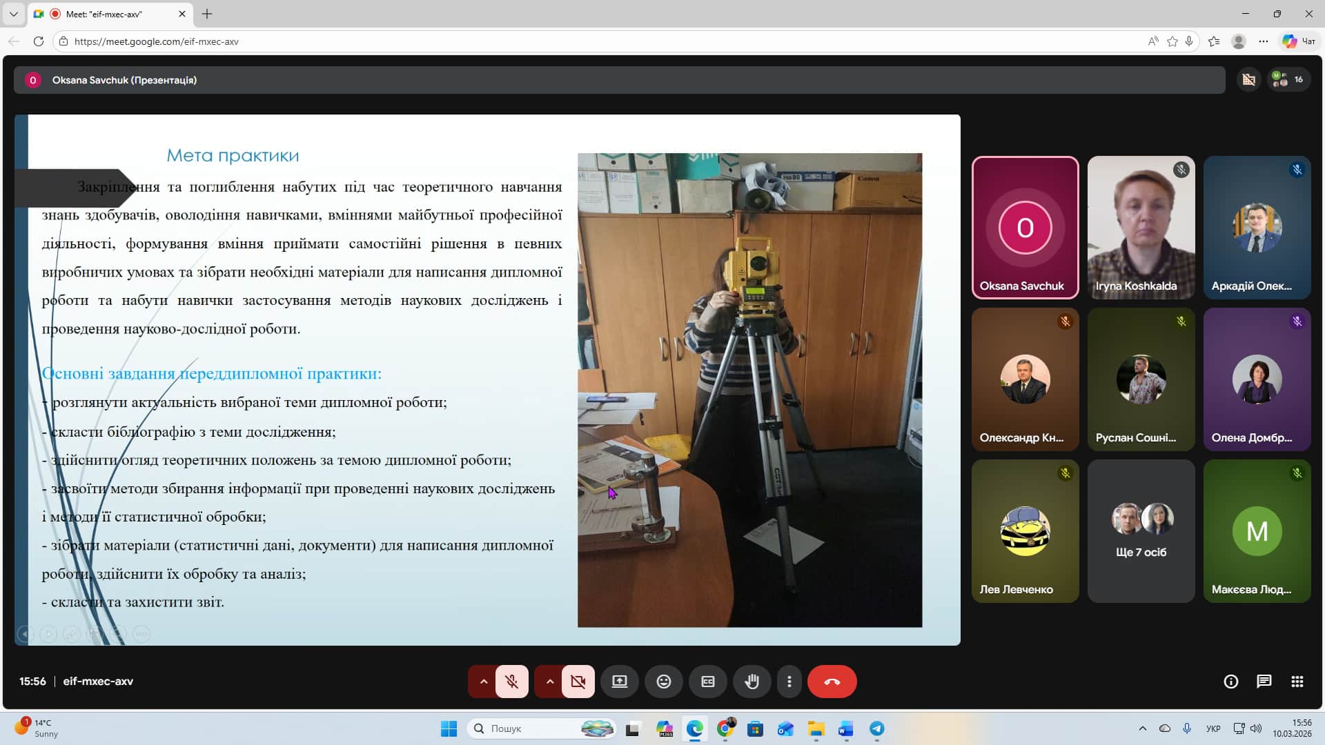 Захист звітів з практики у здобувачів спеціальності «Геодезія та землеустрій»