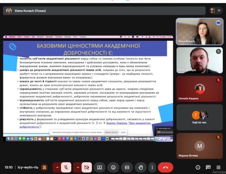 Особливу увагу приділили правовим аспектам забезпечення чесності та відповідальності у навчанні, науковій діяльності та викладанні.