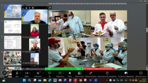 У нараді взяли участь: гарант ОПП Фощан А.Л., д.т.н., професор кафедри харчових технологій в ресторанній індустрії (ХТвРІ); члени проектної групи: Юрченко С.Л., к.т.н., доцент кафедри ХТвРІ, Колеснікова М.Б., к.т.н., професор кафедри ХТвРІ, Омельченко С.Б., к.т.н., доцент кафедри ХТвРІ; стейкхолдери: Оробченко А.С., директор ТОВ «КАПС ФУД СІСТЕМС» м. Харків, Ткаченко У.О., інженер-технолог регіональній групи компаній “Balex company”, м. Харків; здобувачі освіти: Шмельова Дарина і Медяник Денис, студенти 3 курсу ДФН, гр. 181-РІ-13б.
