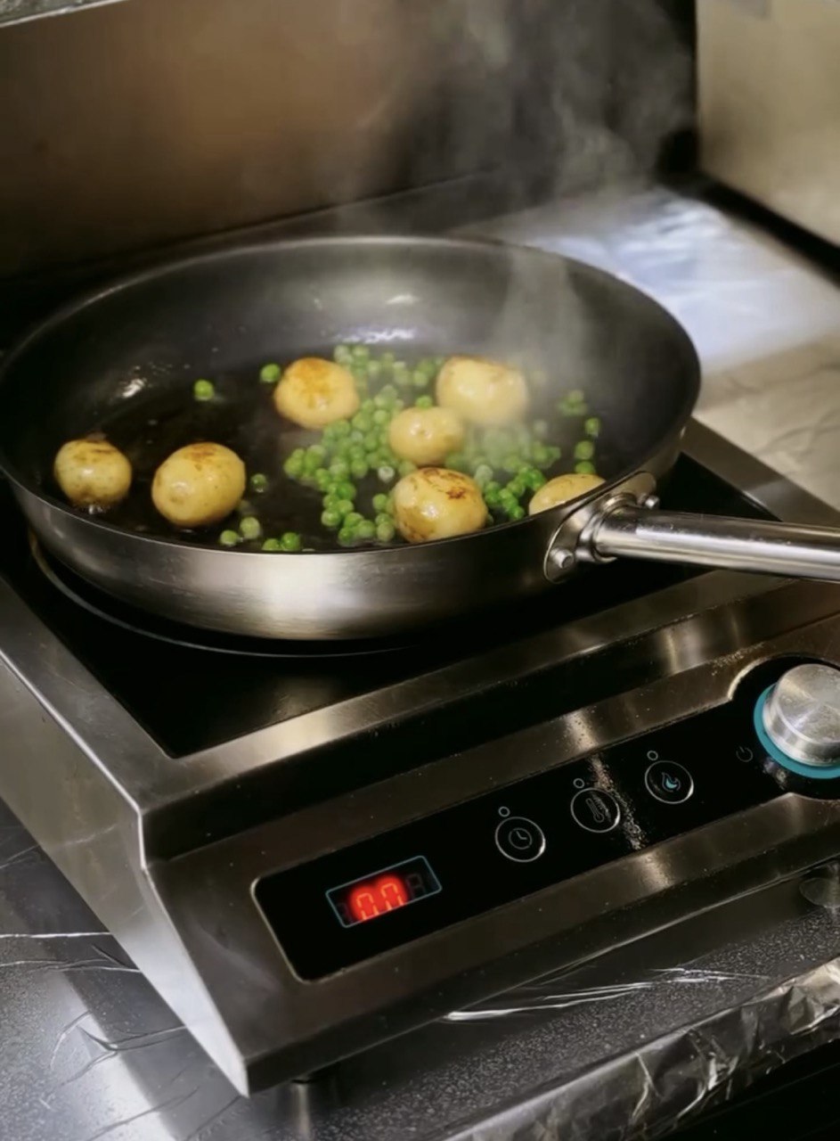 Здобувач Тарандюк Олександр у рамках дисципліни «Технологія харчової продукції закладів ресторанної індустрії» демонструє відпрацювання страви «Стейк з яловичого язика з картоплею».