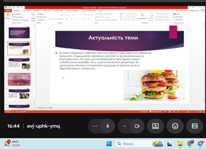 Здобувачі ступеня вищої освіти “магістр” освітньої програми «Технології хліба, кондитерських, макаронних виробів і харчоконцентратів» – Дмитро Сливар та Марк Нікітін – презентували результати своїх досліджень, що незабаром будуть представлені на конференції. Доповіді викликали жваву дискусію, під час якої учасники обмінялися ідеями, порадами та власним науковим досвідом.