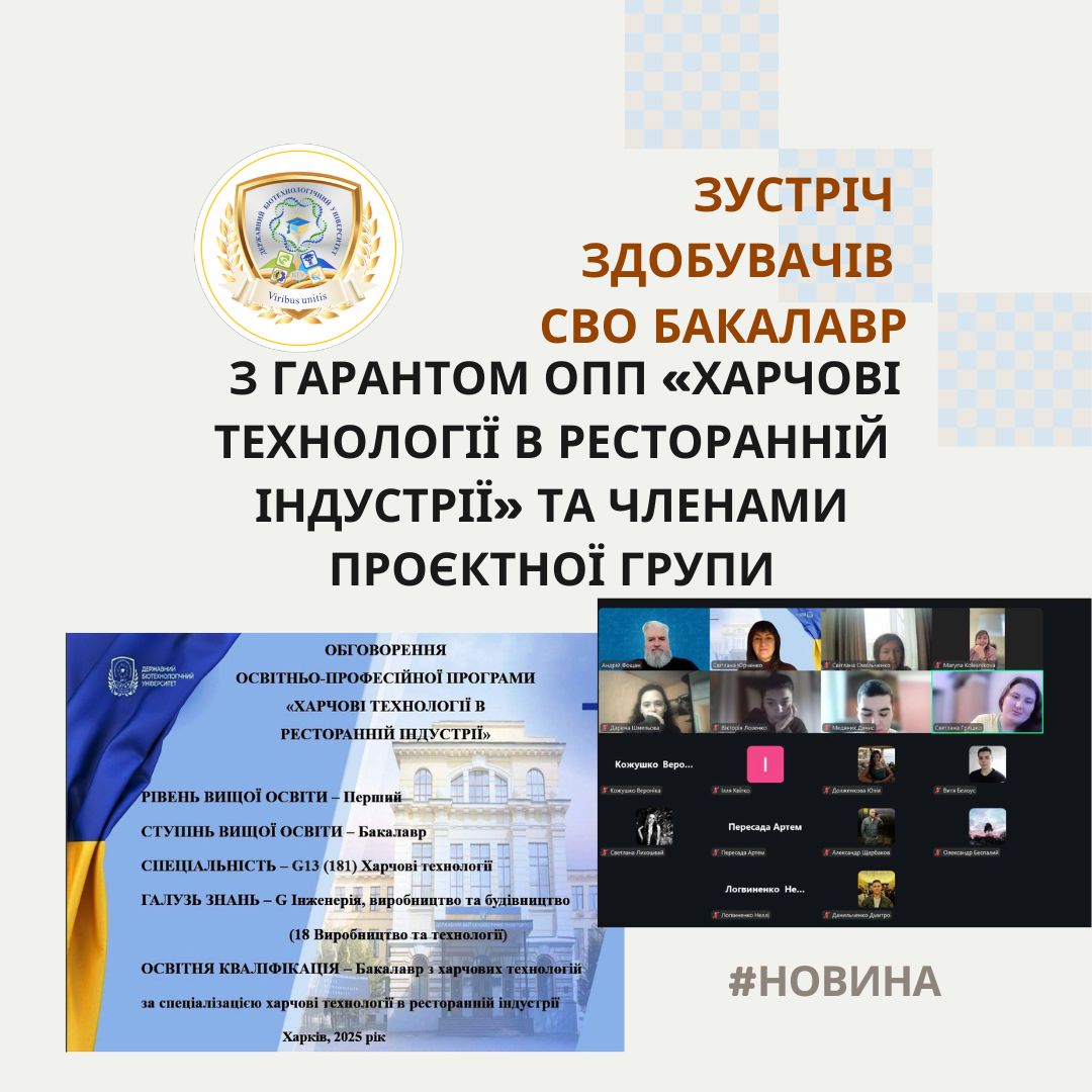 Зустріч здобувачів СВО бакалавр з гарантом ОПП «Харчові технології в ресторанній індустрії» та членами проєктної групи