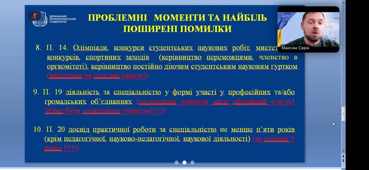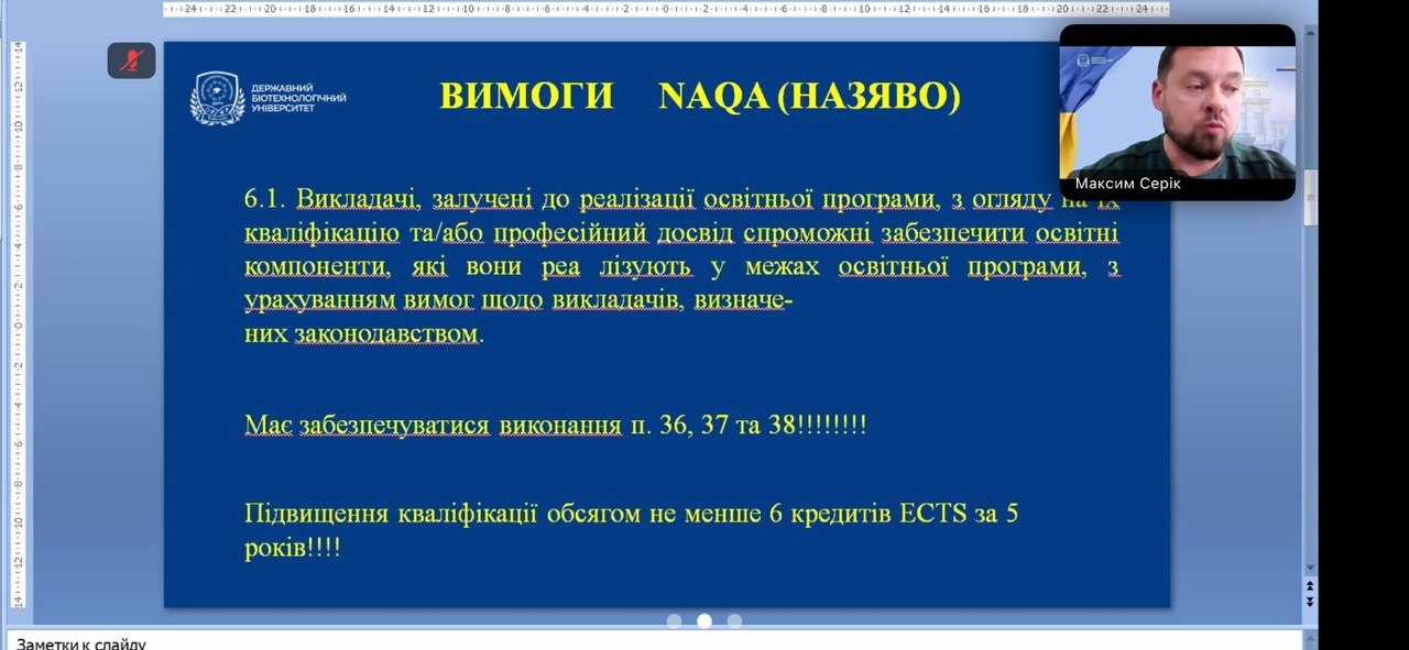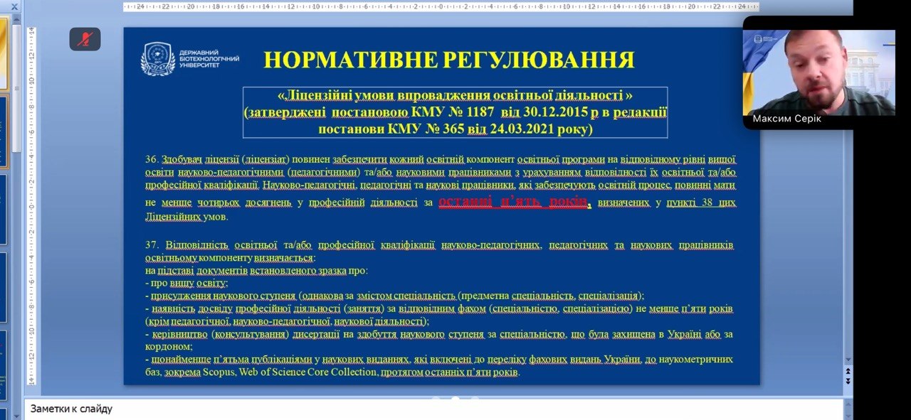 У заході взяли участь декани факультетів, завідувачі кафедр, гаранти освітніх програм, науково-педагогічні працівники університету. Ініціатором та головним спікером виступив проректор з науково-педагогічної роботи СЕРІК Максим Леонідович. У ході виступу було представлено системний аналіз кадрового забезпечення освітнього процесу, зокрема в контексті дотримання Ліцензійних умов провадження освітньої діяльності та вимог Національного агентства із забезпечення якості вищої освіти (НАЗЯВО). Особливу увагу приділено відповідності науково-педагогічних працівників освітнім компонентам, які вони забезпечують, а також необхідності підтвердження професійної активності за останні п’ять років.