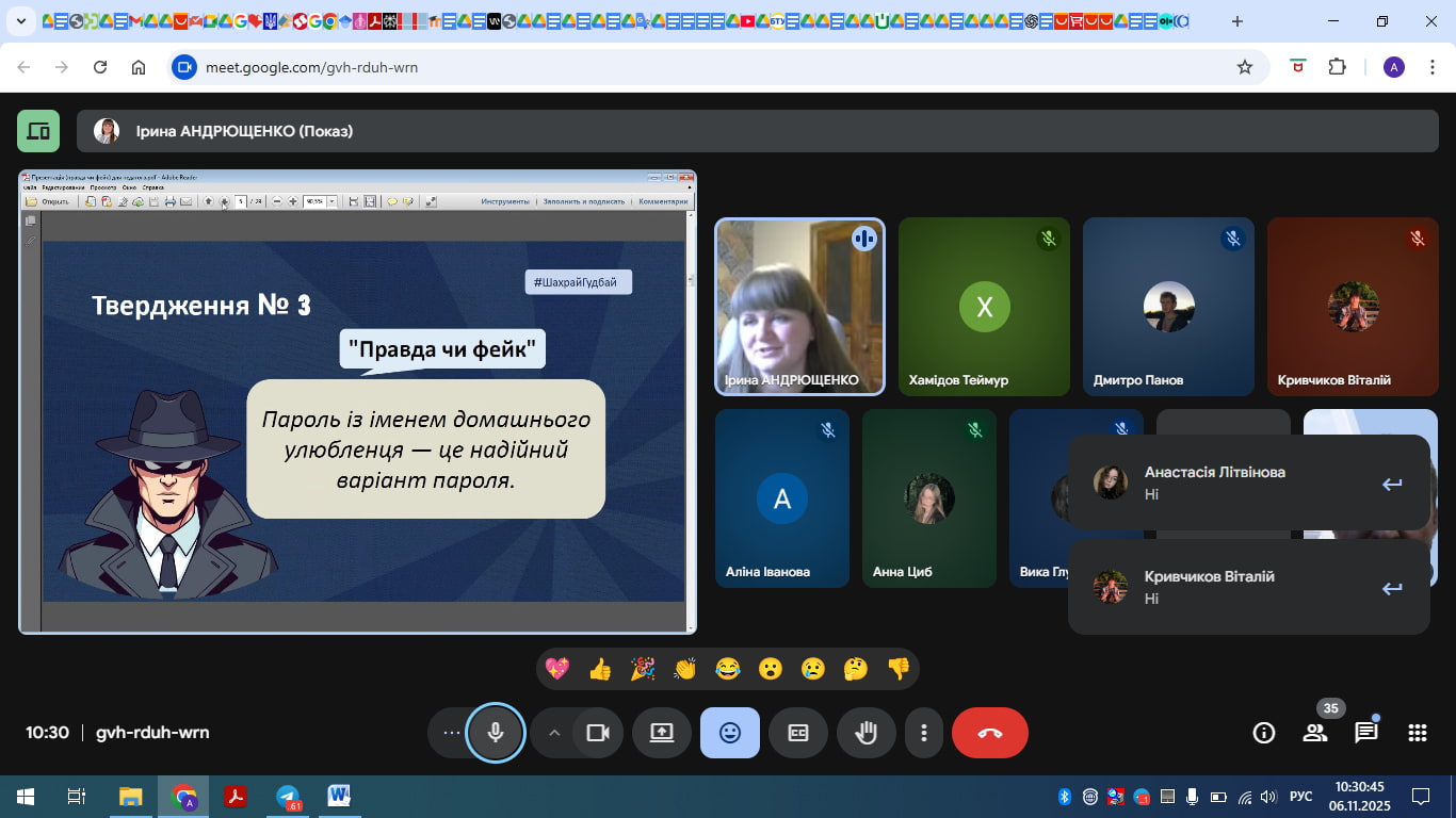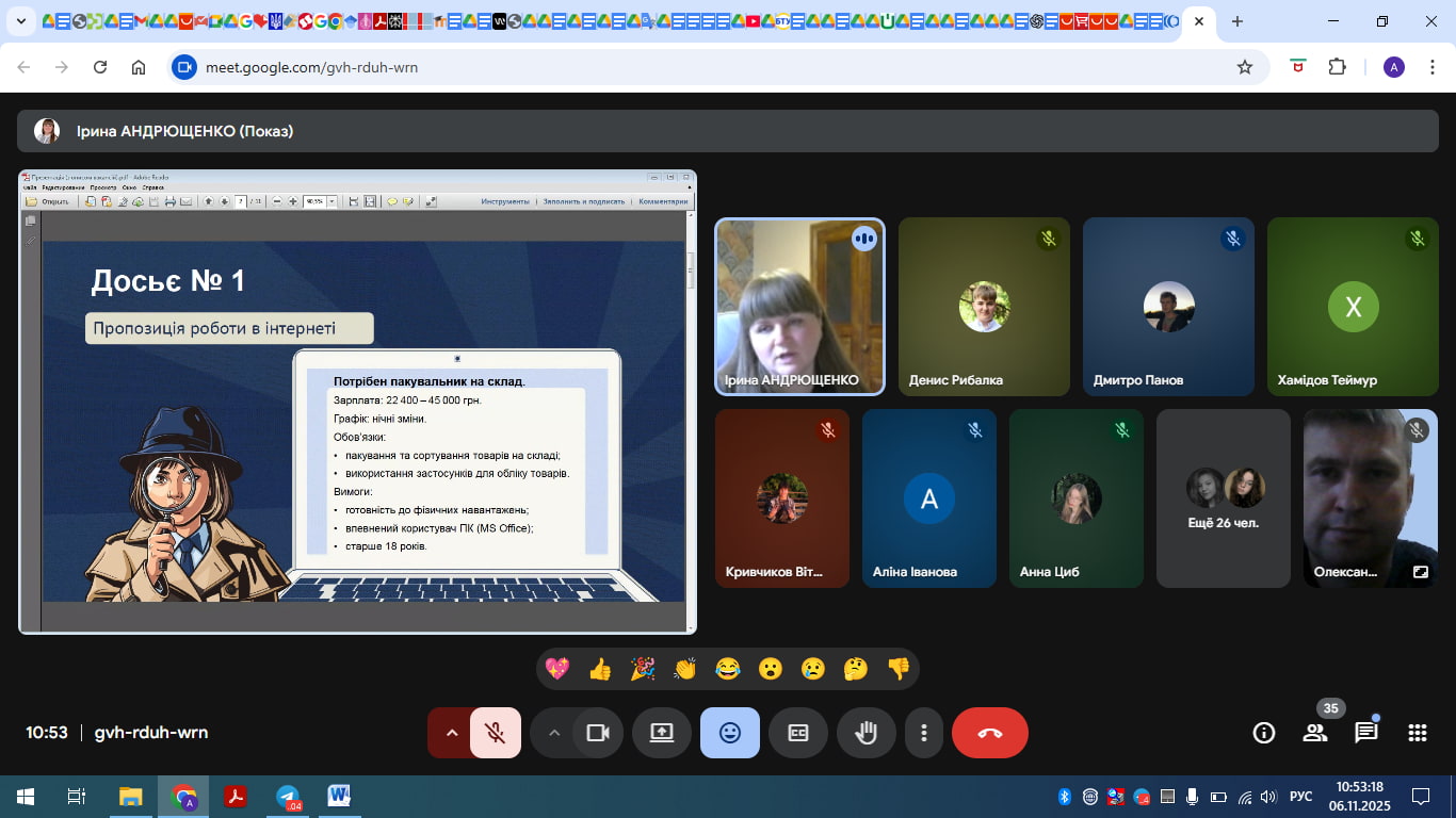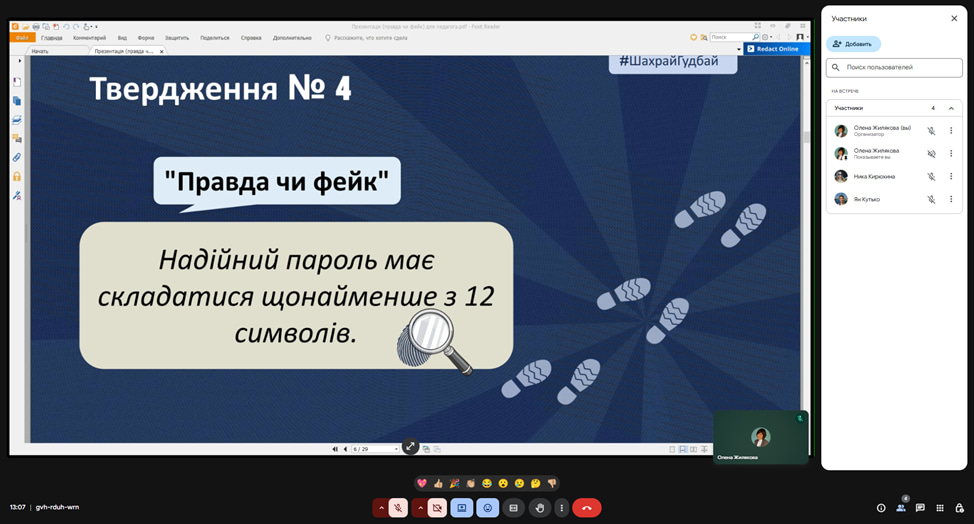 Здобувачі працювали не як пасивні слухачі, а як справжні детективи: аналізували підказки, виявляли ризики та відпрацьовували навички, що допомагають уникати сучасних шахрайських схем. У межах марафону розібрали дві динамічні «справи». Перша, «Правда чи фейк» вимагала від учасників відрізнити достовірні повідомлення від фейкових, створених за всіма правилами шахрайського маскування. Друга справа «Вакансія чи афера? Розпізнай ризик» відкривала завісу над маніпулятивними пропозиціями швидкого заробітку, що приховують небезпеку. Саме такі вправи формують корисні звички – перевіряти інформацію, аналізувати й не довіряти красивим обіцянкам без доказів. Марафон подарував важливий практичний досвід та ще раз підкреслив: платіжна безпека – це навичка, яку необхідно постійно тренувати.