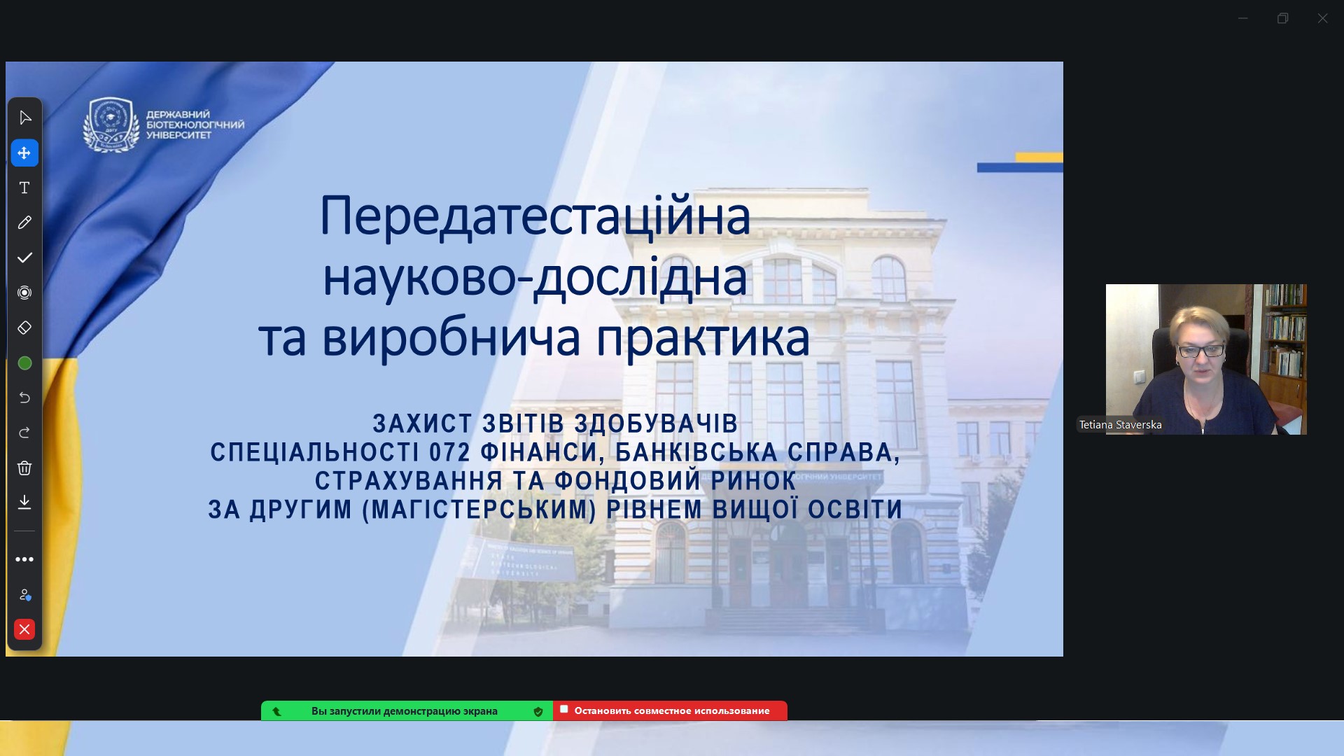 7 листопада відбувся захист звітів з передатестаційної науково-дослідної та виробничої практики здобувачів ступеня вищої освіти «магістр» спеціальності 072 «Фінанси, банківська справа, страхування та фондовий ринок».
