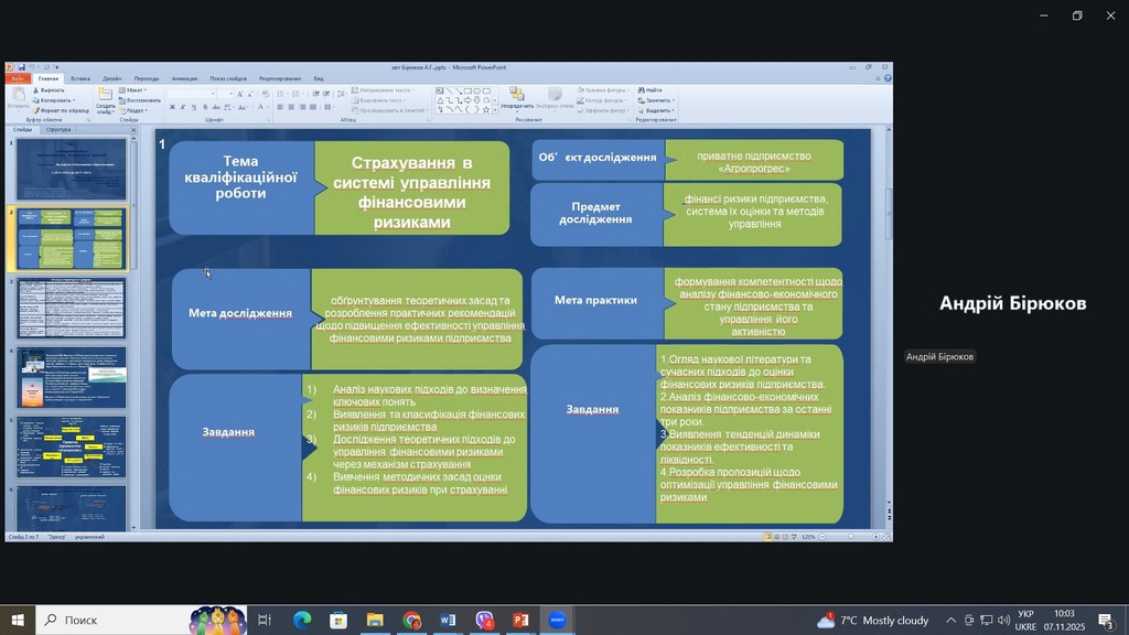 7 листопада відбувся захист звітів з передатестаційної науково-дослідної та виробничої практики здобувачів ступеня вищої освіти «магістр» спеціальності 072 «Фінанси, банківська справа, страхування та фондовий ринок».