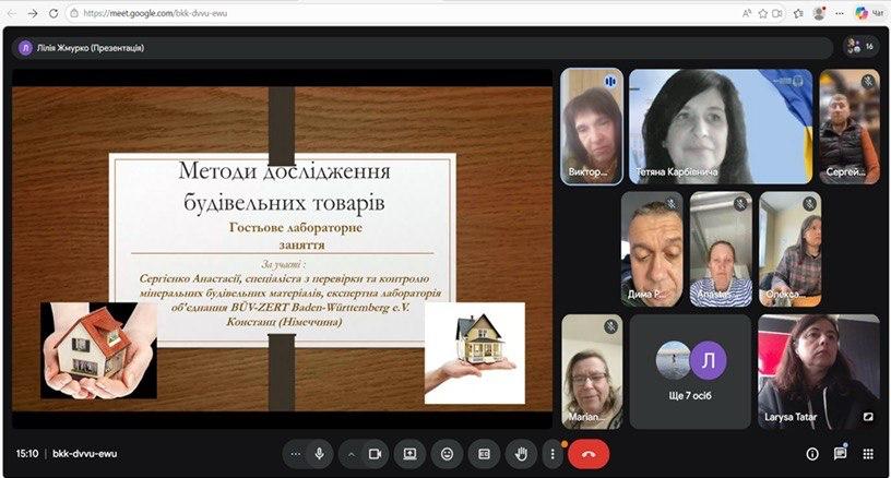 В перспективі подальшої міжнародної співпраці 24 березня 2026 року на кафедрі торгівлі, готельно-ресторанної та митної справи відбулося гостьове лабораторне заняття на тему: «Методи дослідження будівельних товарів» за участю спеціаліста з перевірки та контролю мінеральних будівельних матеріалів випробувальної лабораторії Організація: BÜV-ZERT Baden-Württemberg e.V. BÜV-ZERT Ba.-Wü", Konstanz – Анастасії Сергієнко.