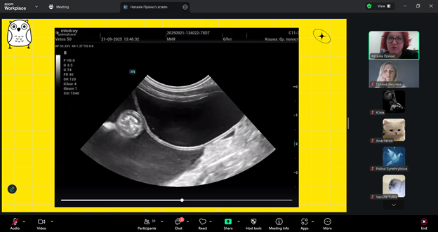 Лектор – Наталія ПРІХНО, яка є кардіологом, лікарем з УЗД даної ветеринарної клініки, розповіла про те, як правильно працювати з УЗД-апаратом, на що звертати увагу під час обстеження котів і собак та які «підводні камені» можуть чекати під час інтерпретації зображень. Було багато корисних порад і реальних випадків з практики — саме те, що найбільше цінують слухачі. Пані Наталія детально пояснила принципи проведення AFAST/TFAST, ключові орієнтири обстеження та їхнє значення у клінічній практиці. Учасники мали змогу ознайомитися з типовими патологіями, які можуть бути виявлені за допомогою цих протоколів, а також з поширеними діагностичними помилками та способами їх уникнення. Окрему увагу було приділено практичним клінічним випадкам, що продемонстрували ефективність AFAST/TFAST у швидкій оцінці стану тварини, прийнятті рішень у невідкладних ситуаціях та моніторингу динаміки стану пацієнта.