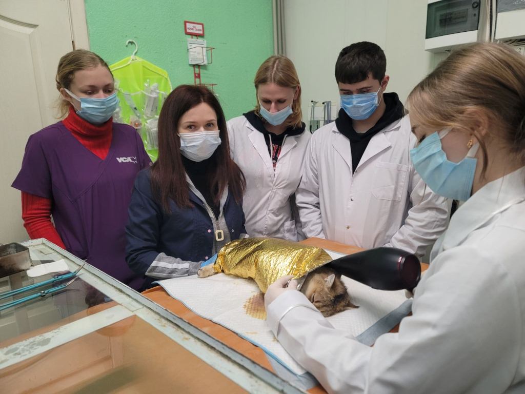 Студенти факультету ветеринарної медицини у березні 2026 року на базі ветеринарної клініки “ВетТочка Пес+Кіт” м. Харків активно відпрацьовують практичні навички в межах освітньої компоненти «Оперативна хірургія з основами топографічної анатомії та анестезіології». Під керівництвом досвідчених викладачів та практикуючих ветеринарних хірургів, зокрема кандидата ветеринарних наук, асистента кафедри ветеринарної хірургії та репродуктології Юрія БУСЕЛА молодь має змогу закріпити теоретичні знання та набути впевненості у виконанні хірургічних маніпуляцій.