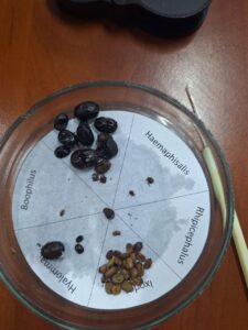 Здобувачі вищої освіти опанували навички ідентифікації іксодид, зафіксованих у 70 % спиртовому розчині із колекції музейних препаратів кафедри фармакології та паразитології, до роду з використанням таблиці-ключа. Доречною була робота з світловими мікроскопами та ознайомлення із особливостями використання мікроскопів бінокулярних стереоскопічних (МБС), що застосовуються для вивчення більших за розмірами біологічних об’єктів. Деякі особливості будови кліщів вивчали за допомогою ручних луп. Наукове значення іксодових кліщів та змістовність викладення матеріалу лягли в основу проведення заняття. Учасники проведеного практичного виїзного заняття дякують організаторам за можливість практичного опанування навичок в умовах безпечного простору, що вкрай важливо для підготовки кваліфікованих спеціалістів.