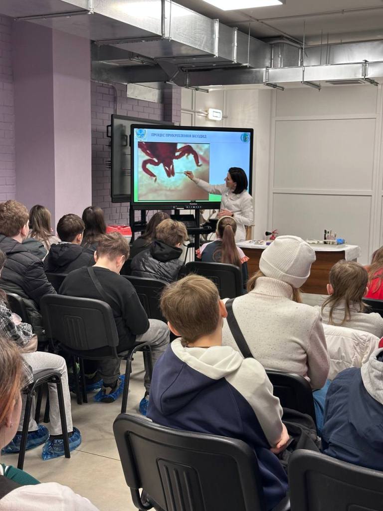 Крім того, під час зустрічей було розглянуто актуальну тему паразитів, зокрема кліщів. Школярам розповіли про їхню будову, особливості розвитку та небезпеку, яку вони становлять для тварин і людини. Було акцентовано увагу на важливості профілактичних заходів, своєчасної обробки тварин і дотримання правил безпеки під час перебування на природі.