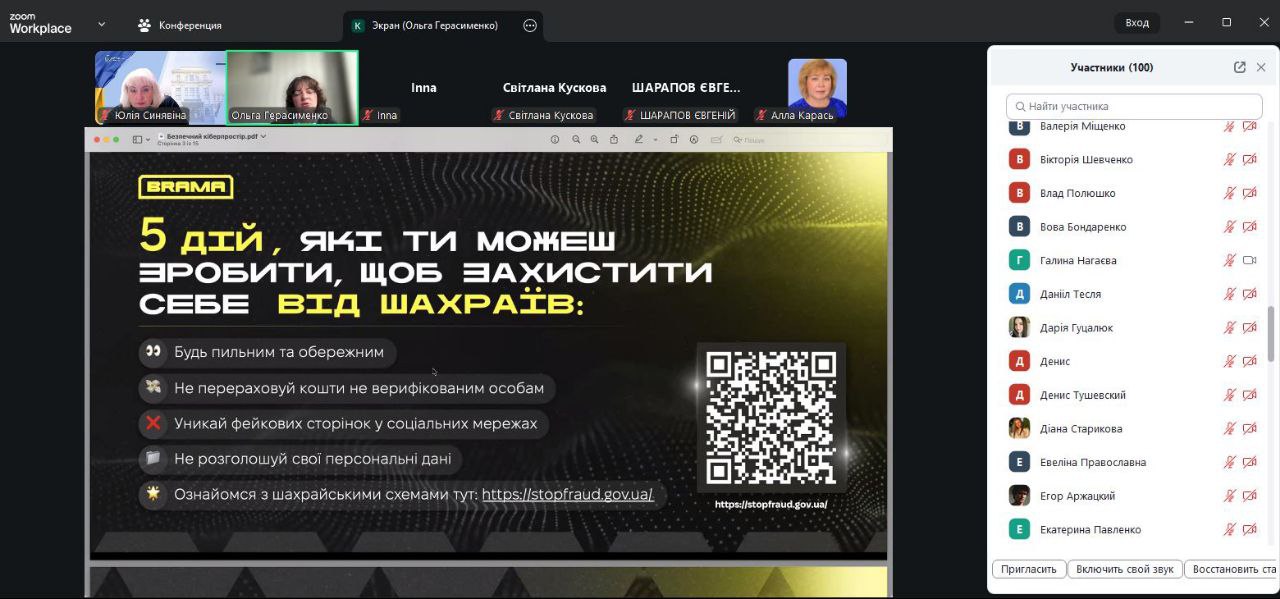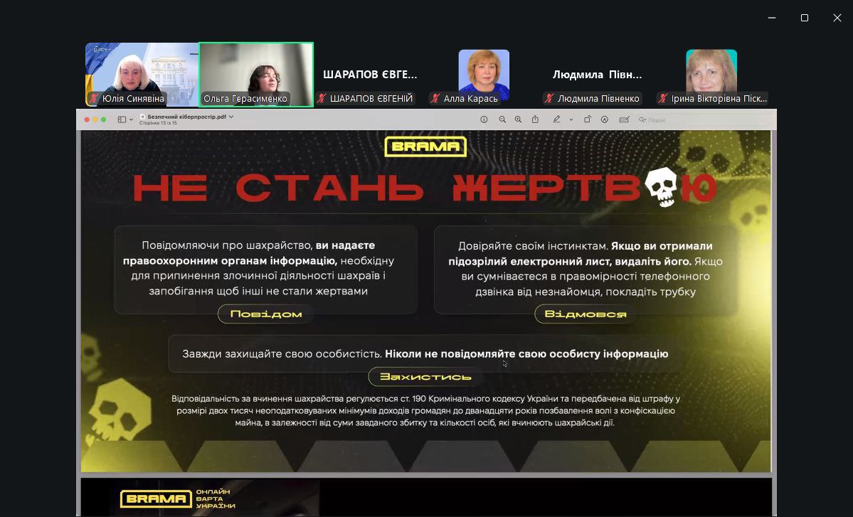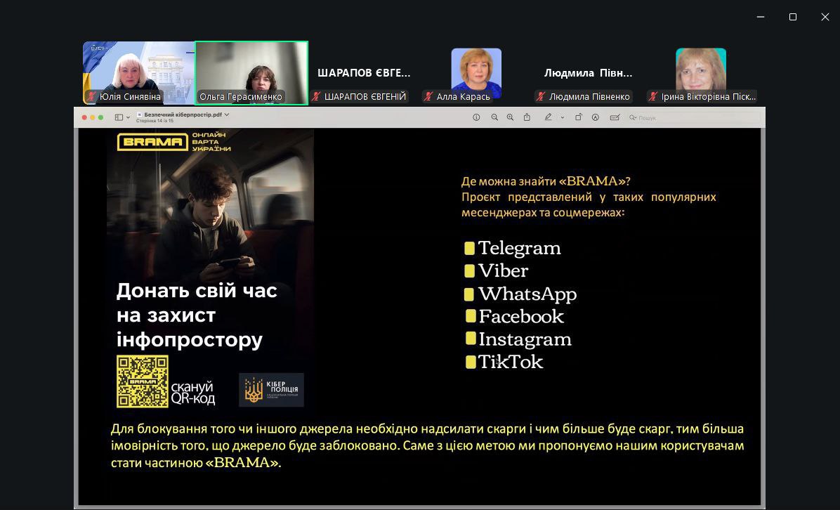 Під час зустрічі представники кіберполіції також познайомили аудиторію з національним проєктом BRAMA https://stopfraud.gov.ua, який допомагає дізнатись, як безпечно користуватись мережею, попереджати та протидіяти злочинним діям в Інтернеті та не стати жертвою ворожої пропаганди.