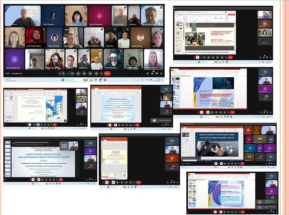 З 16 по 19 грудня 2025 року відбуваються захисти кваліфікаційних (магістерських) робіт на здобуття другого (магістерського) рівня вищої освіти за спеціальністю 073 Менеджмент.