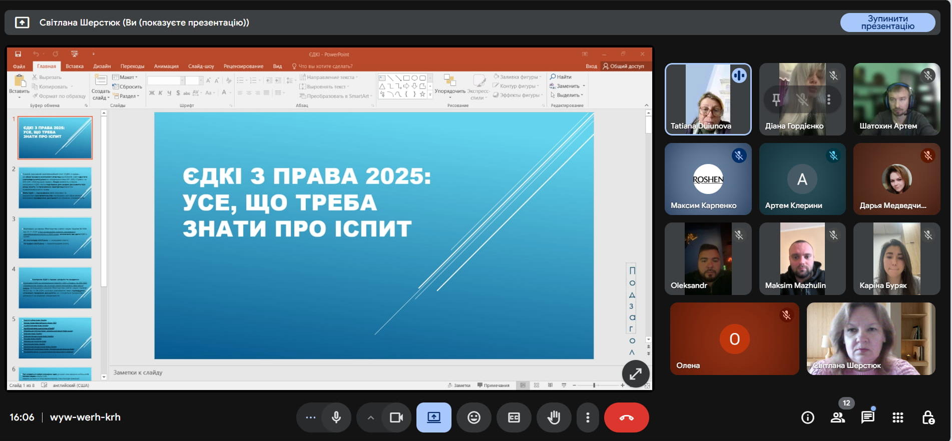 Організаційно-інформативна онлайн зустріч щодо проведення ЄДКІ з права