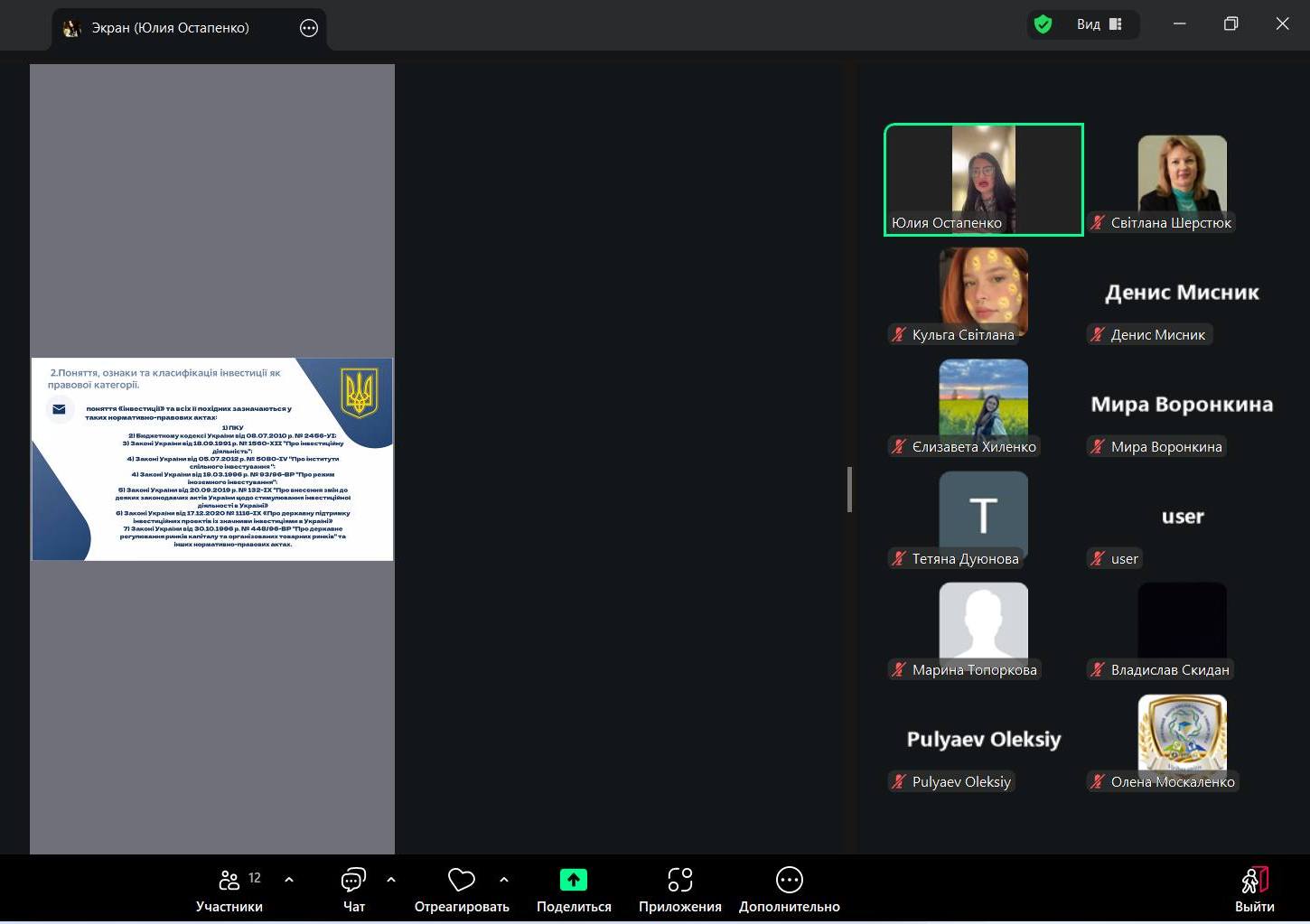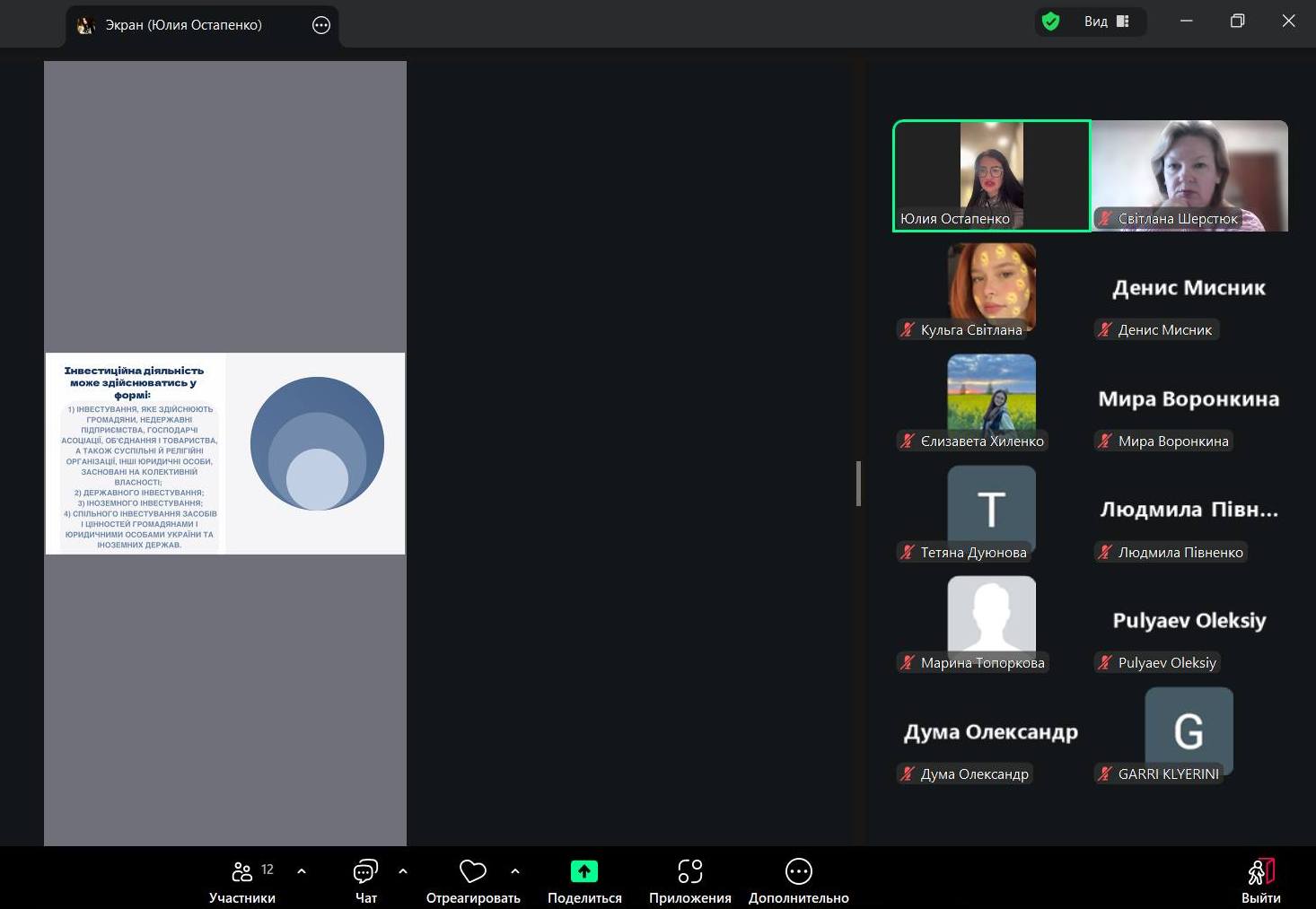 Захід викликав жвавий інтерес серед здобувачів освіти і став майданчиком для фахової дискусії щодо розвитку інвестиційної діяльності в Україні.