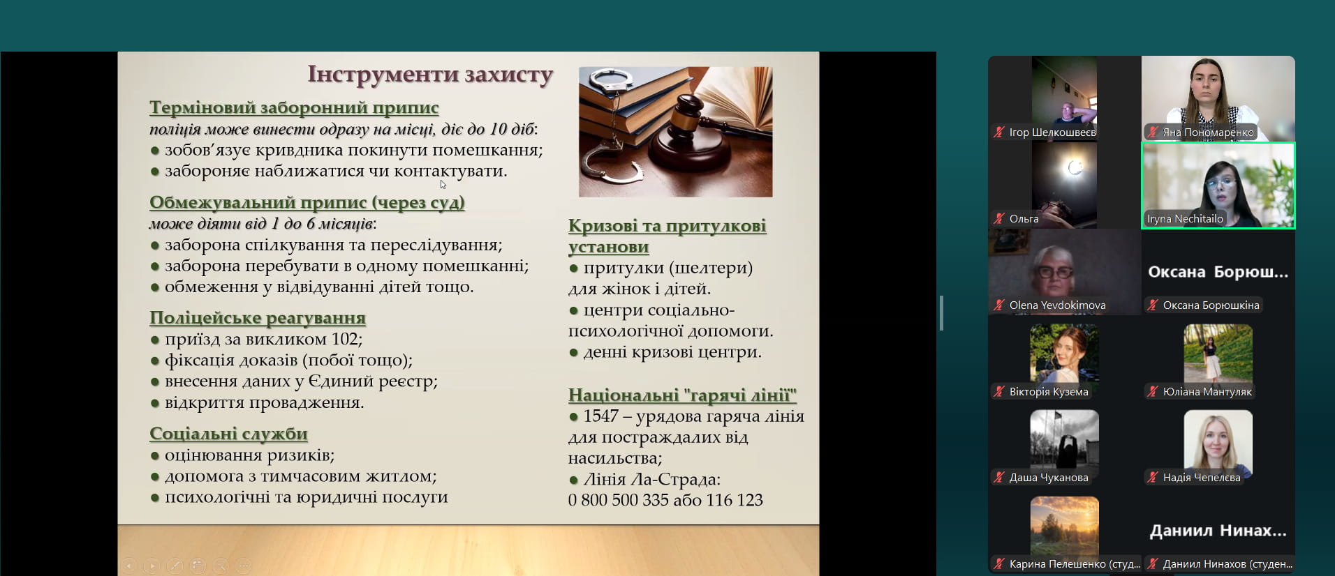 Здобувачі ОПП «Соціологія» разом із гаранткою ОП доц. Оксаною Борюшкіною відвідали відкриту лекцію на тему «Домашнє насильство: як розпізнати, попередити, запобігти?»