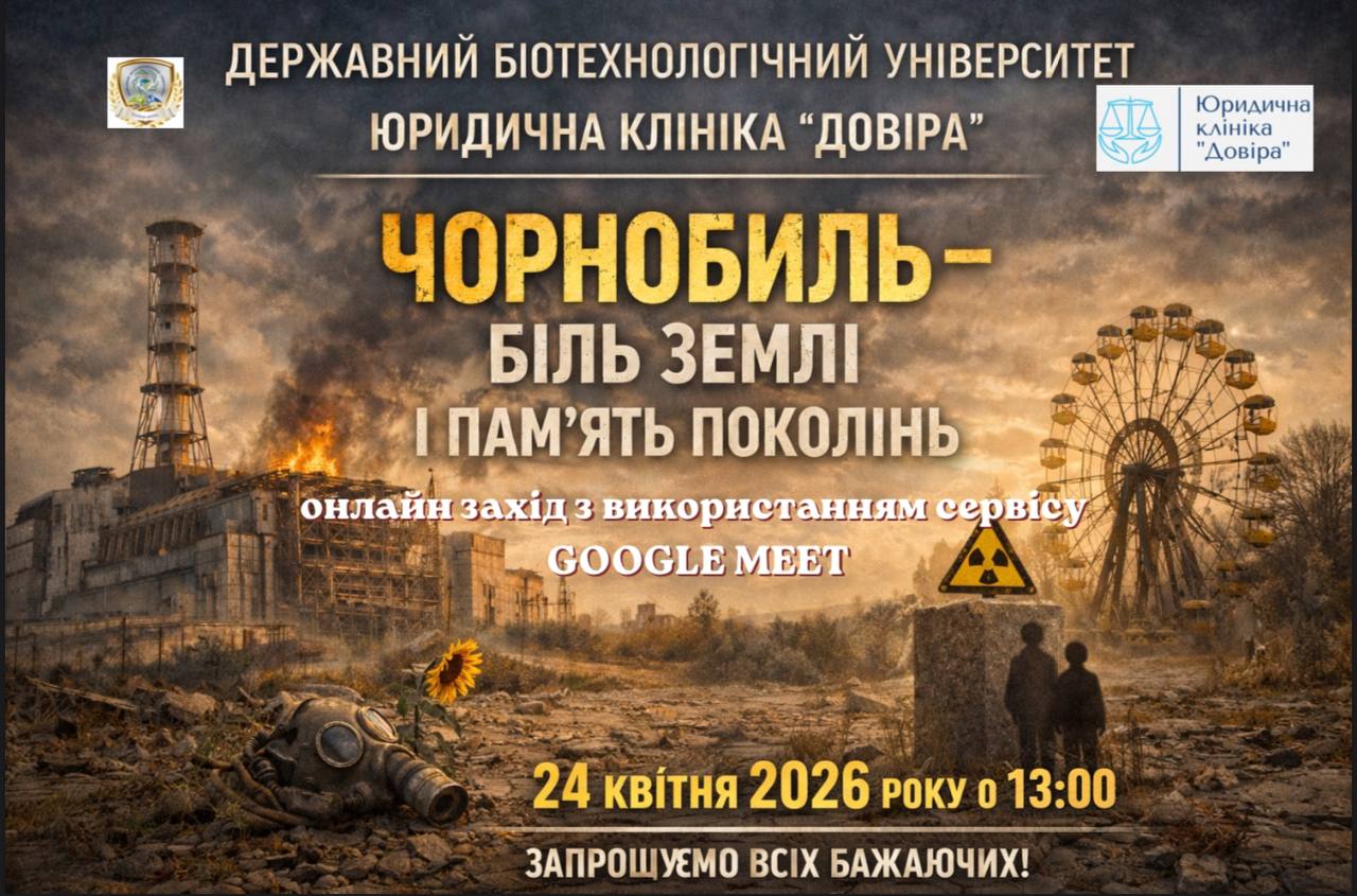 24 квітня 2026 року, напередодні 40-х роковин з дня Чорнобильської катастрофи на базі Юридичної клініки «Довіра» відбувся онлайн-захід на тему: «Чорнобиль — біль землі і пам’ять поколінь».