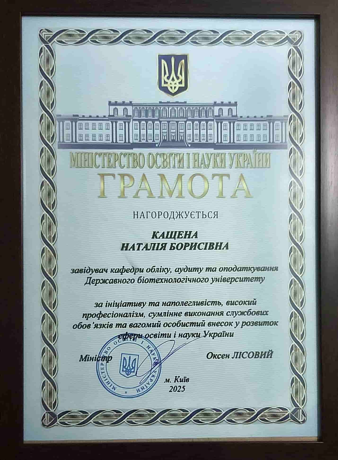 - Грамота Міністерства освіти і науки України (2025 р.);