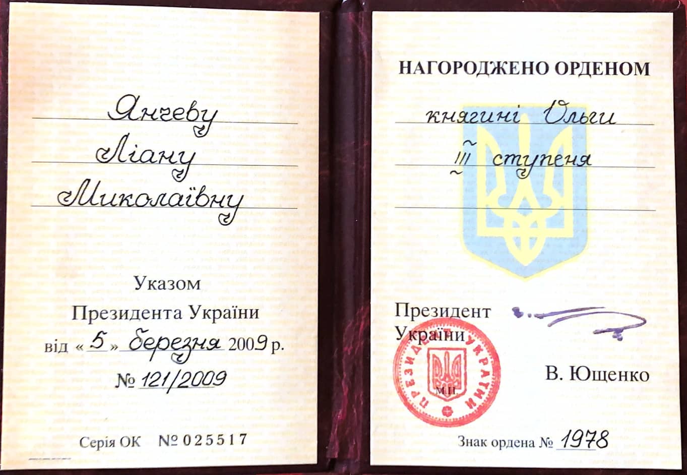 - 2009 р. – Орден Княгині Ольги ІІІ ступеня