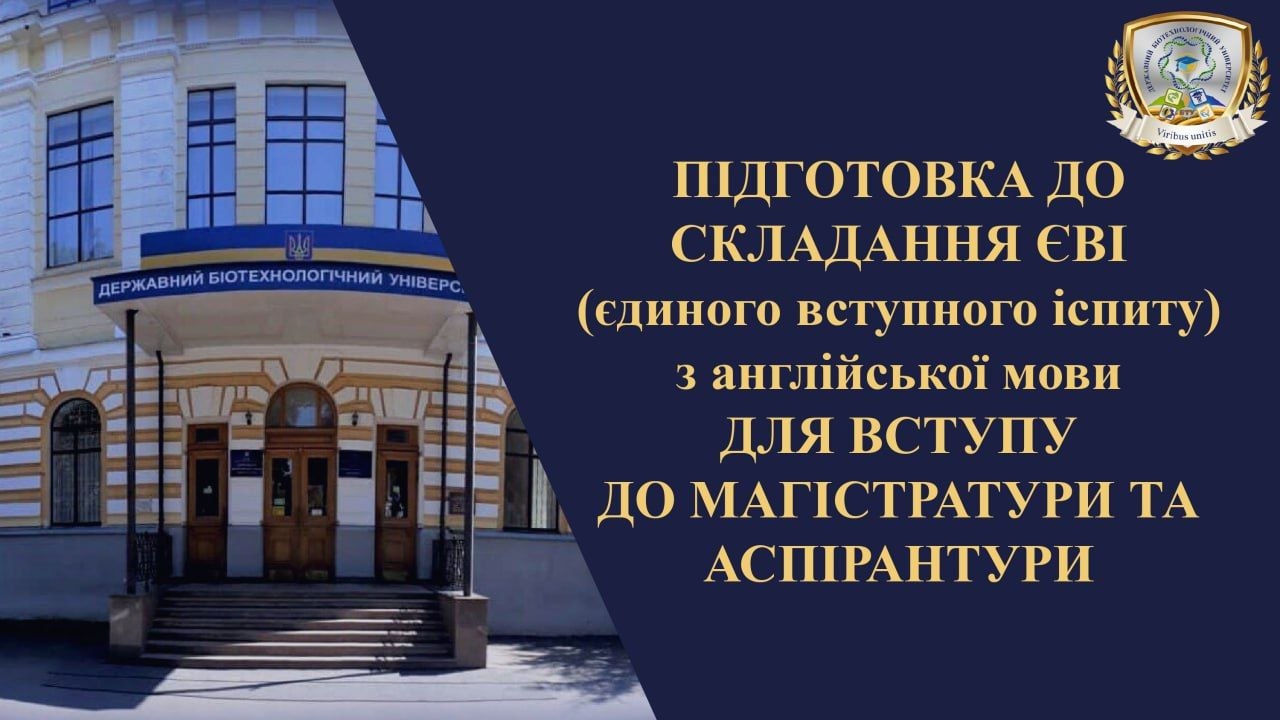 Навчальний центр «Культура іноземної та української наукової мови» Державного біотехнологічного університету організовує курс тривалістю 3 місяці (з 1 квітня до кінця червня 2026 р.) для підготовки здобувачів першого (бакалаврського) рівня до успішного складання ЄВІ та вступу до магістратури та тих, хто планує вступ до аспірантури.